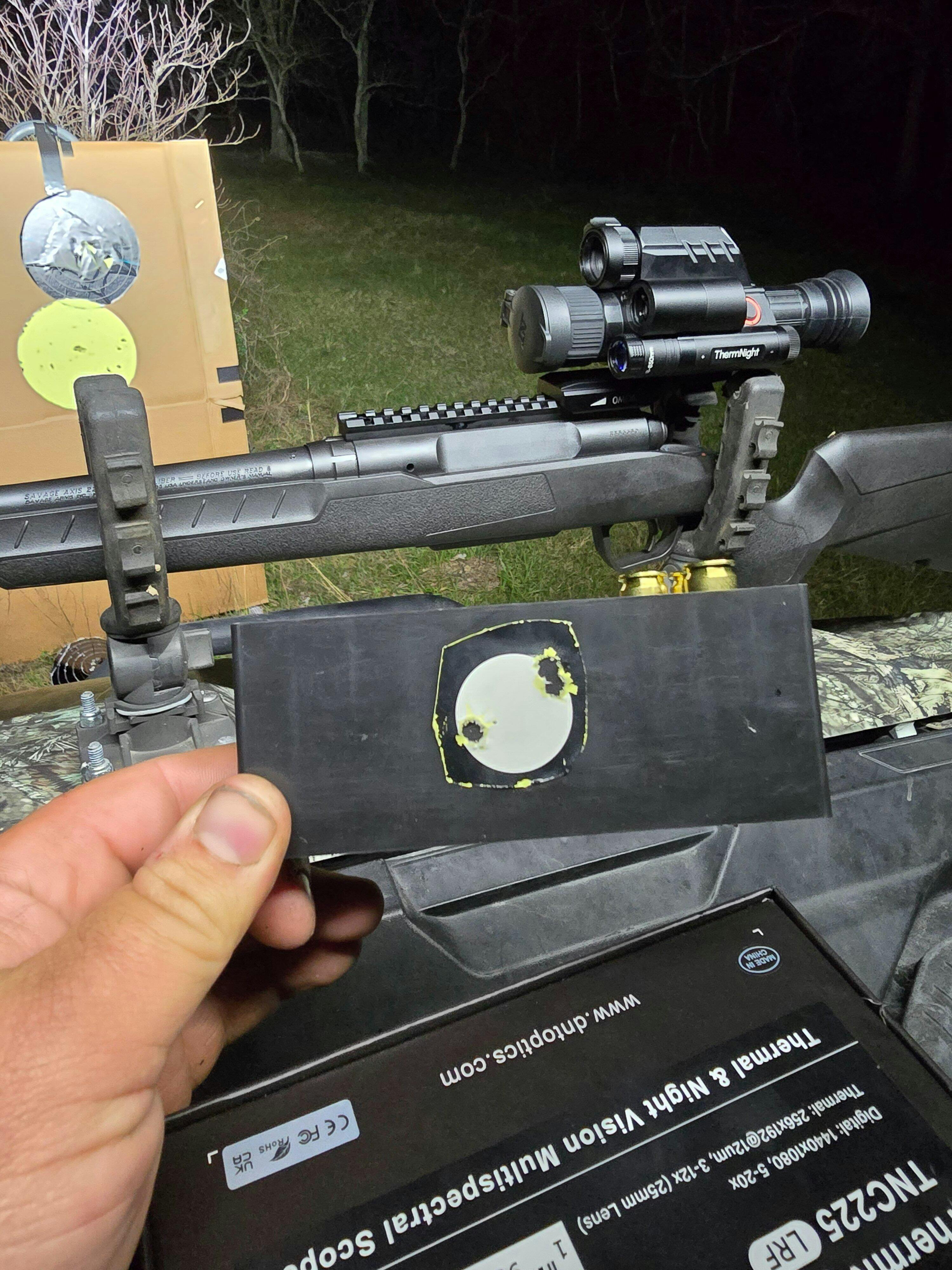 The ThermNight TNC225R's "one shot zeroing" function is available in both thermal imaging and day/night vision channel. With only one shot using the day/night vision, you can easily switch to the thermal and adjust the reticle to be zeroed to the same point of impact (POl) as your day/night vision, saving you time so you can focus on your hunt.